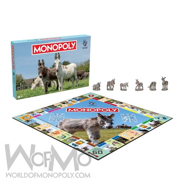 Exclusive game components includes a custom game board, six bespoke tokens, themed Title Deed cards, customised Chance and Community Chest cards, 32 wooden Shelters, 12 wooden Barns, wooden dice, custom money and a game guide.