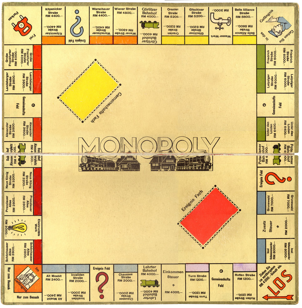 Considering the agitated time in the thirties in Germany and the subsequent war, it remained silent around Monopoly after an unsuccesful introduction in 1936 till long after 1945 (= end of WW II).