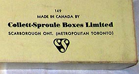 Many of them have even been manufactured by Canadian licencees like The Copp Clark Publishing Co.Ltd. from Toronto/Vancouver/ Montreal and later Collett-Sproule Boxes Ltd. from Scarborough, Ont. (Metropolitan Toronto).