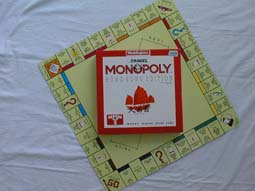 a Chinese junk on the cover of the box with the word MONOPOLY in Chinese