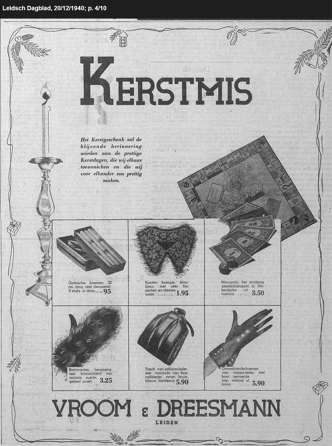 Toen in 1936 de Engelse firma John Waddington Ltd. van de Amerikaanse firma Parker Brothers het Monopoly spelen, gezellig in de keuken, in 1941 (=W.O.II)