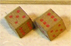 De 2 dobbelstenen zijn van onbewerkt hout.
