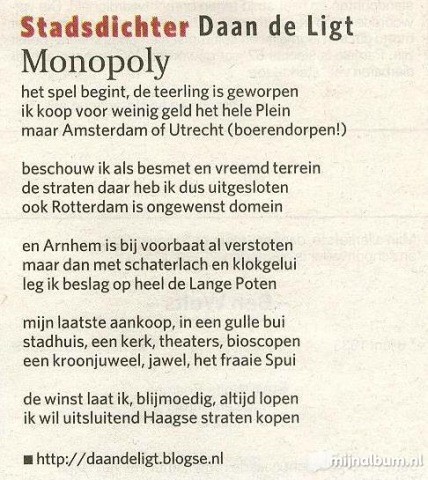 met z'n 'goeie ouwe Wester', het zijn inmiddels allemaal begrippen. Net zo goed als Monopoly een begrip is onder de spellen. Amsterdam en Monopoly vormen met elkaar een unieke twee-eenheid, een collectors item, maar zeker ook een schitterend spel voor iedereen die Amsterdam een warm hart toedraagt!"
