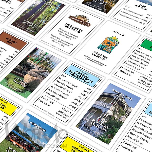 The game tokens have been redesigned to represent Rotorua’s iconic features, such as a whitewater raft, mountain bike, Skyline Luge, the isite clock tower, and more, replacing the traditional Monopoly pieces. This brings an authentic Rotorua flavour to the classic game, making it even more special.