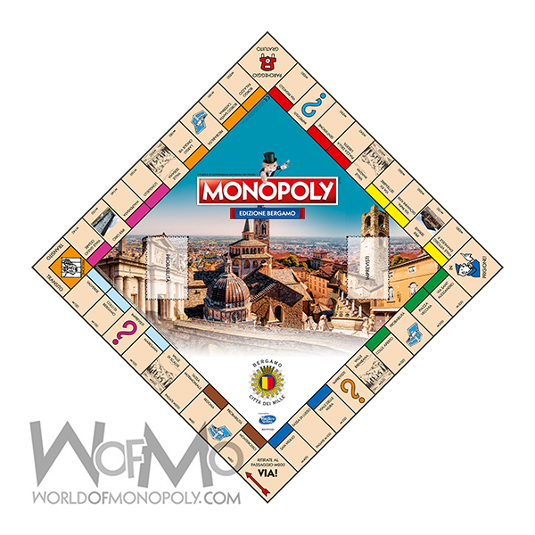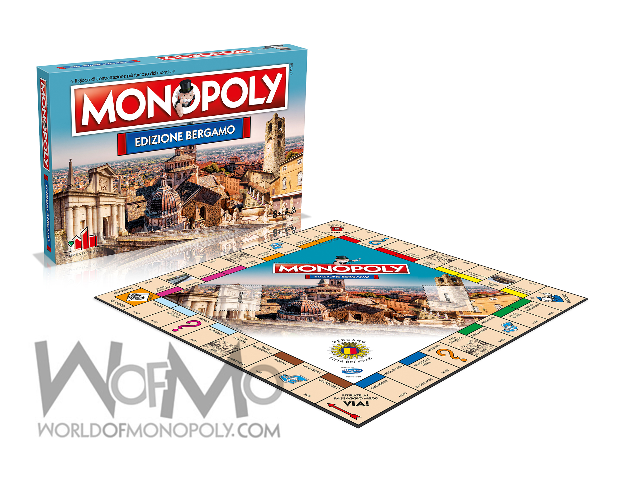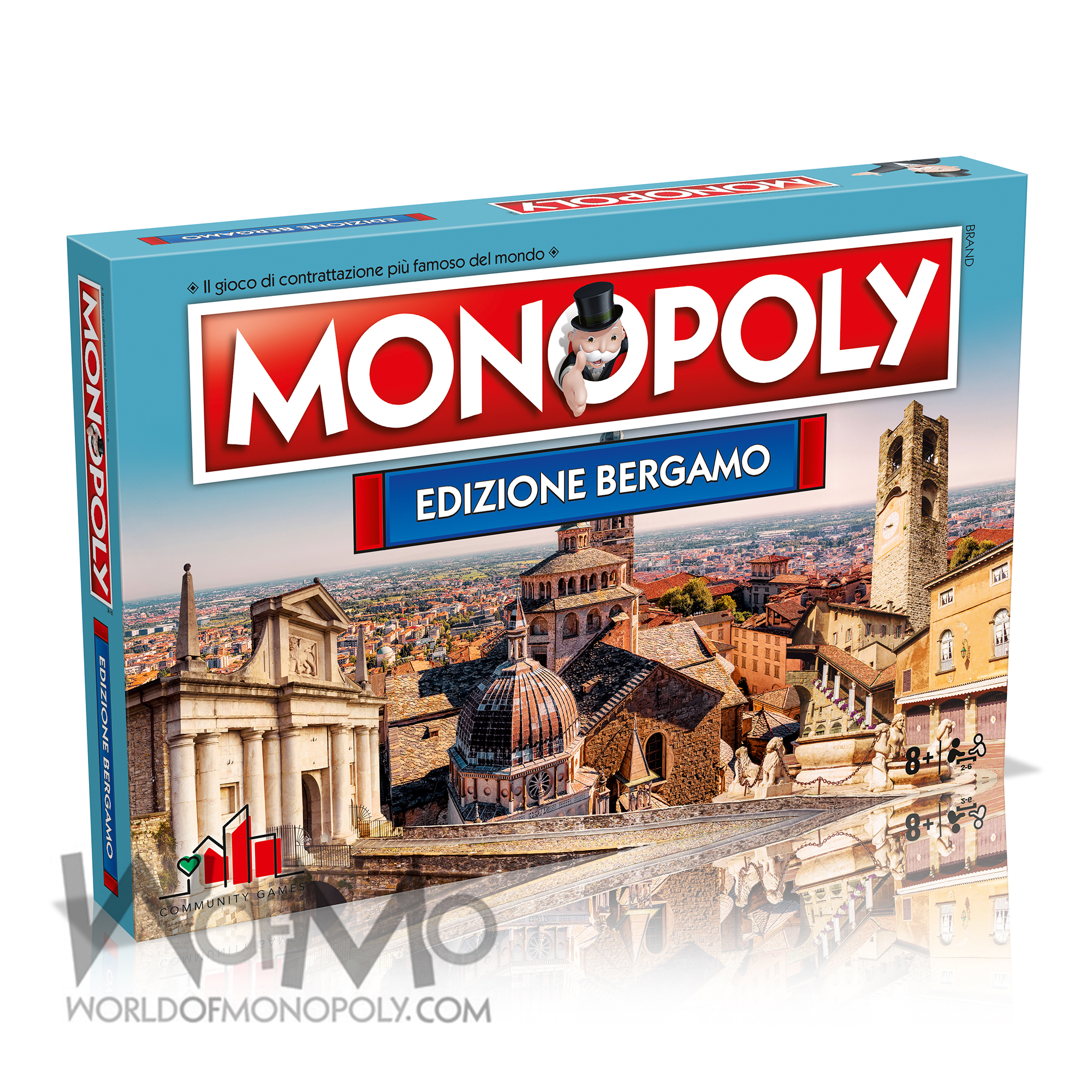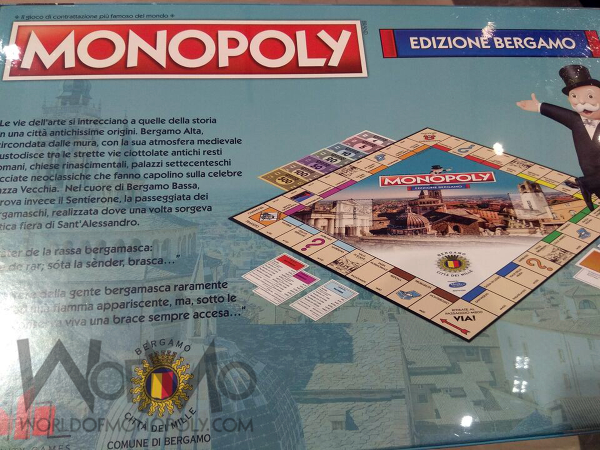 The Bergamo Edition Monopoly was granted the use of the coat of arms of the Municipality. In exchange for the concession of the coat of arms, the company Winning Moves, donated €10,000 to the Fund of Mutual aid to fund social and cultural initiatives linked to the coronavirus emergency which corresponds to the sales value of 300 pieces and 30 copies were given to the Municipality.