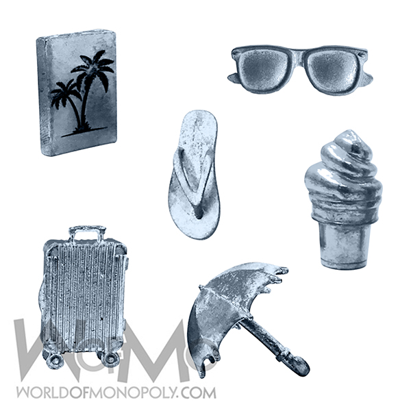 The pawns have chanegd and all represent summer: glasses, ice cream, flip flops, umbrella, trolley and palm trees. Each element of the game has a holiday and carefree flavor in perfect line with the Romagna mood including the banknotes.
