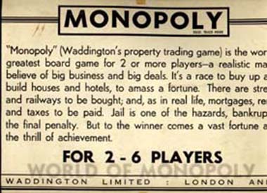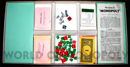 You can tell that this red white red cover long box edition of the long box is the first edition becasue it still has the "engine illustration", on the front which is a typical Waddington's feature. This prooves that this version is from before 1961, the year of the new Parker Brothers copyright!