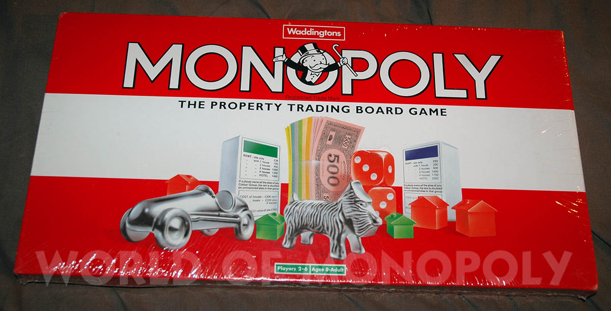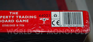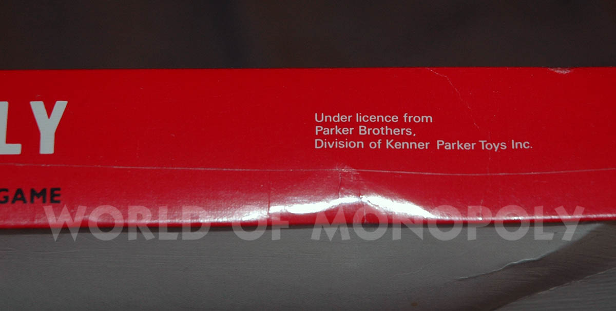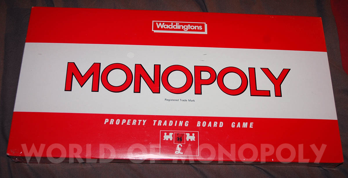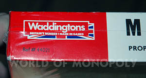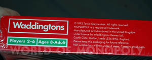 - The top red bar of the lid shows Waddingtons in a white rectangle instead of the "Uncle Pennybags between 2 engines with £ sign" logo.
