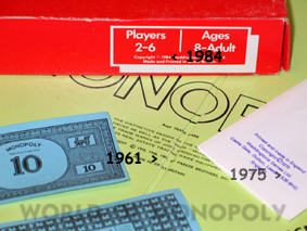 - The Parker Bros. copyright 1961 is mentioned underneath the word Monopoly in open characters.