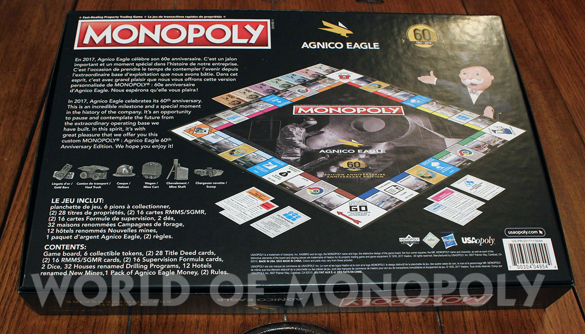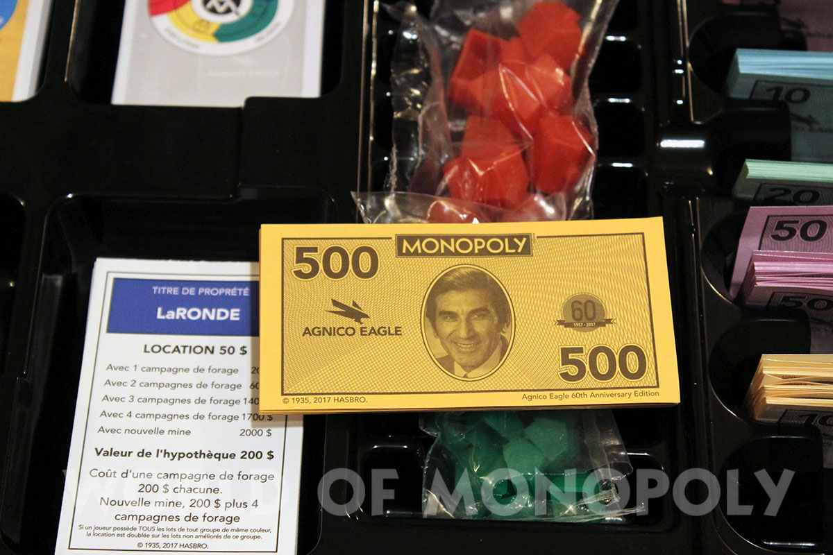 So, it had a customized version of the classic Monopoly game produced, the Agnico Eagle 60th Anniversary Edition - to give to Agnico Eagle in Canada.