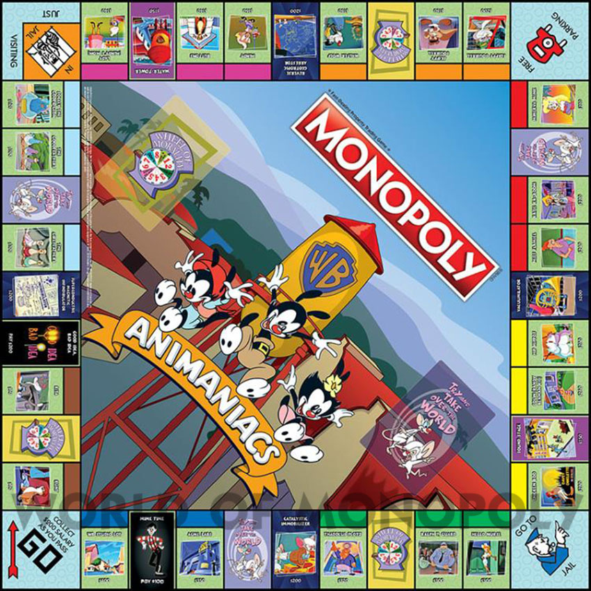 Scene-stealing Warner siblings Yakko, Wakko, and Dot are joined by Pinky and the Brain and Dr. Otto von Scratchansniff in this reimagined Monopoly game. Players bounce around the board collecting other cast members, locations, and more from the 90s hit cartoon.