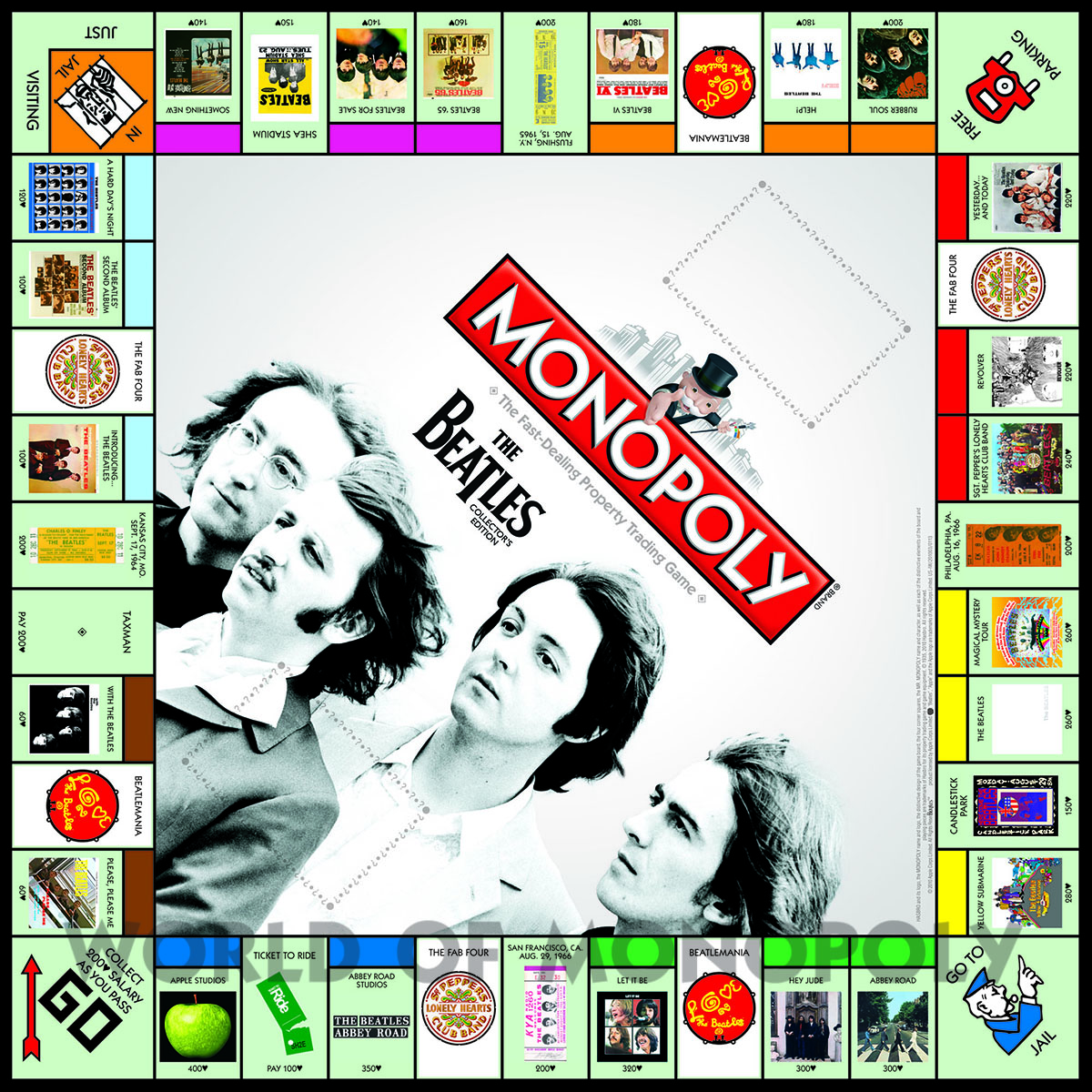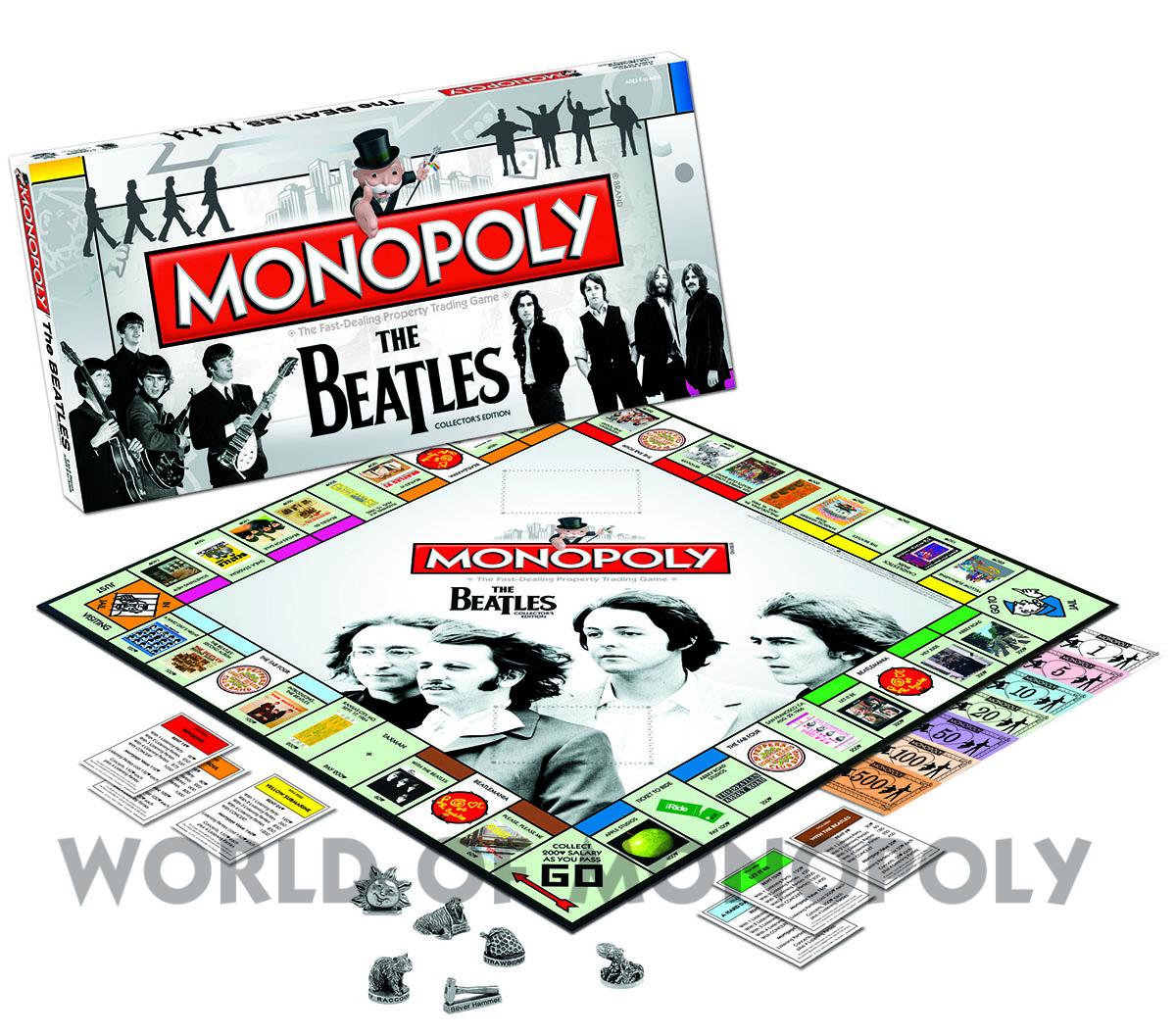 The Beatles Collector’s Edition of the MONOPOLY game offers Beatles fans of all ages the opportunity to create their own private music anthology by collecting all the Beatles albums from Please, Please Me to Let it Be. In the first board game ever licensed by The Beatles, this special Collector’s Edition lets players recall their favorite Beatles tunes for a musical MONOPOLY experience.