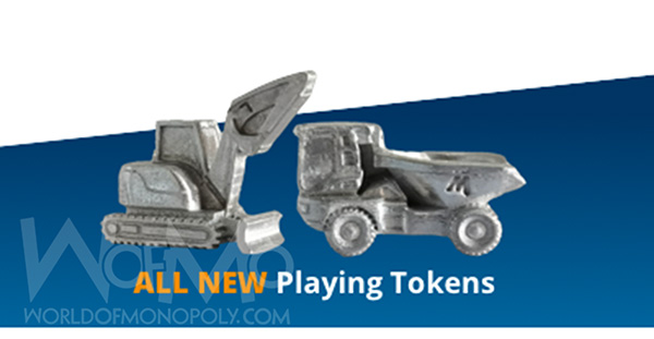 Each player can choose from six collectable, custom-made playing pieces that are included in each Construction Monopoly set: These new limited-edition Monopoly tokens are: a Komatsu HD605-8 dumper truck, JCB 4CX backhoe loader, Takeuchi TB290 excavator, the Mecalac Revotruck , a Bridgestone tyre and the Tiltrotator from Rototilt.