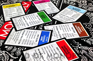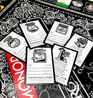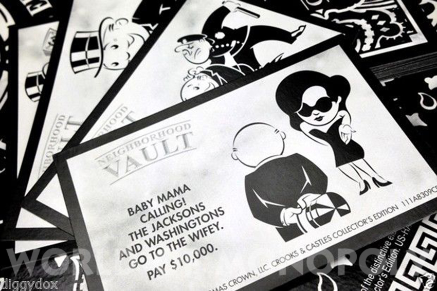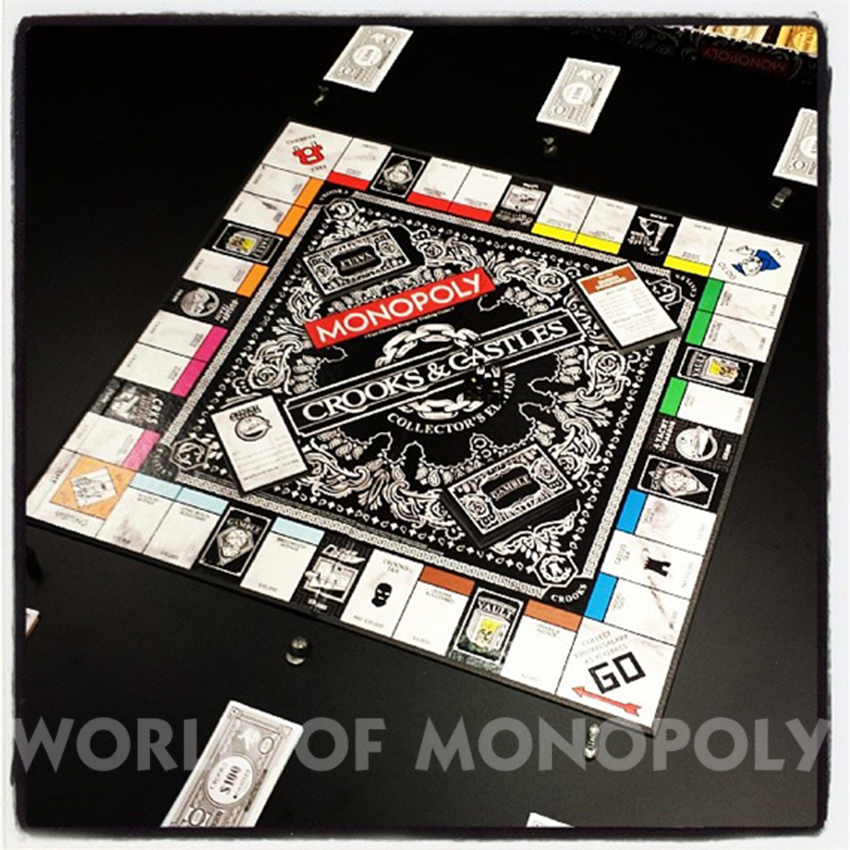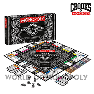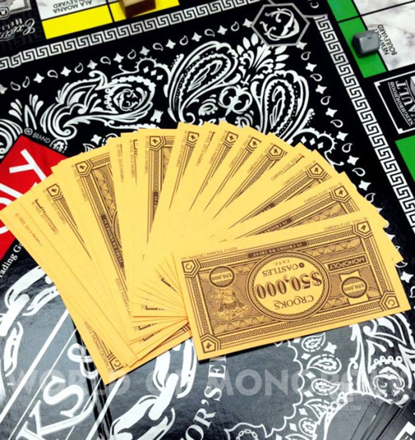 Leaving no detail unattended, Crooks & Castles has revamped the box and game board, which are outfitted with the brand’s iconic bandana, and included custom cards, money, and game tokens. To emphasize luxury Crooks replaced the original train stations with a Bullet Train, Executive Heli-Pad, Clear Port, and Yacht Harbor. Customized tokens have been pulled directly from the lives of the Crooks, which include, a fitted hat, retro sneaker, and the co-founder’s French Bull-dog. In addition, the stakes are higher in this game with monetary denominations from $100-50,000 and vastly increased property values.