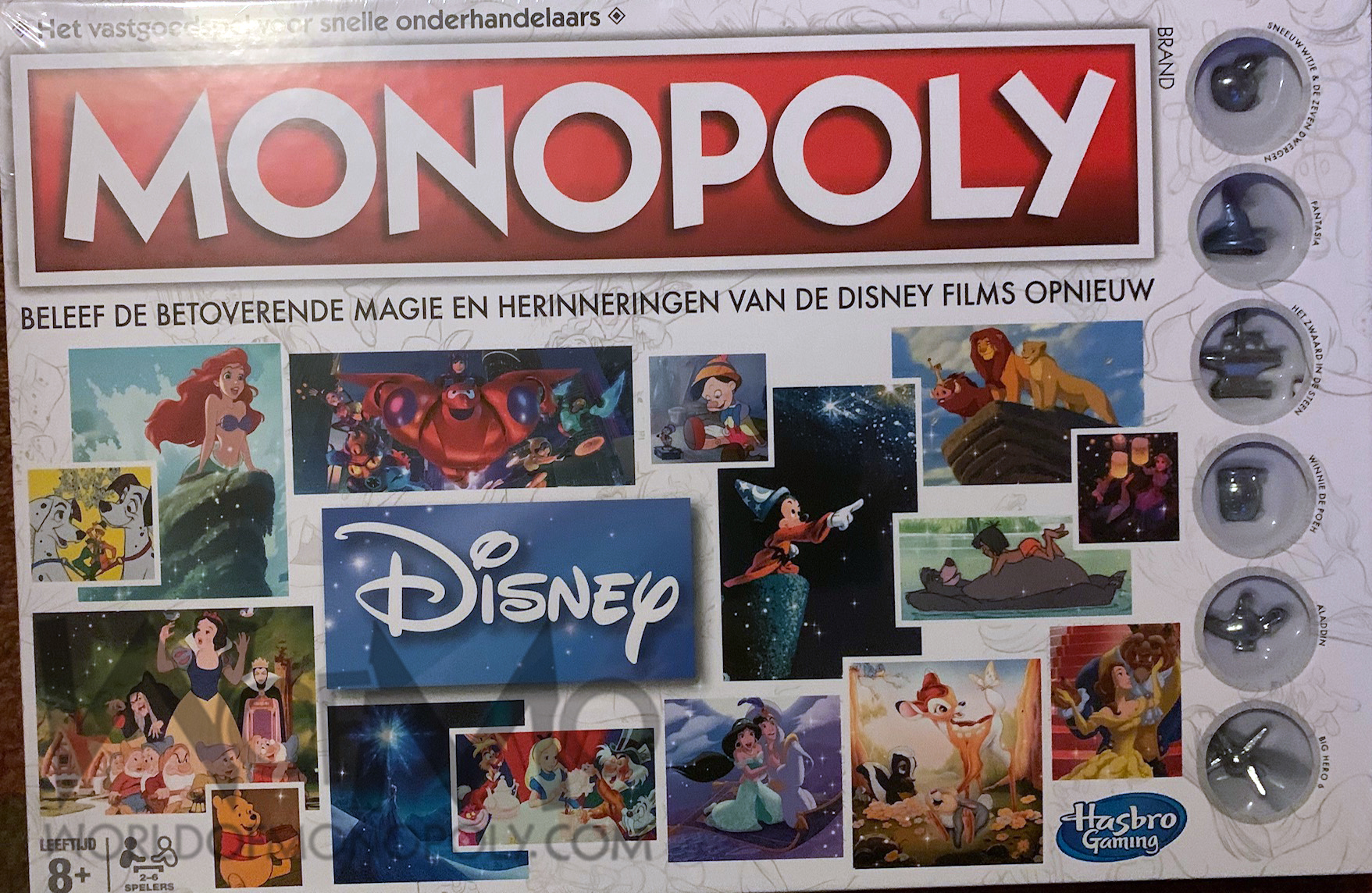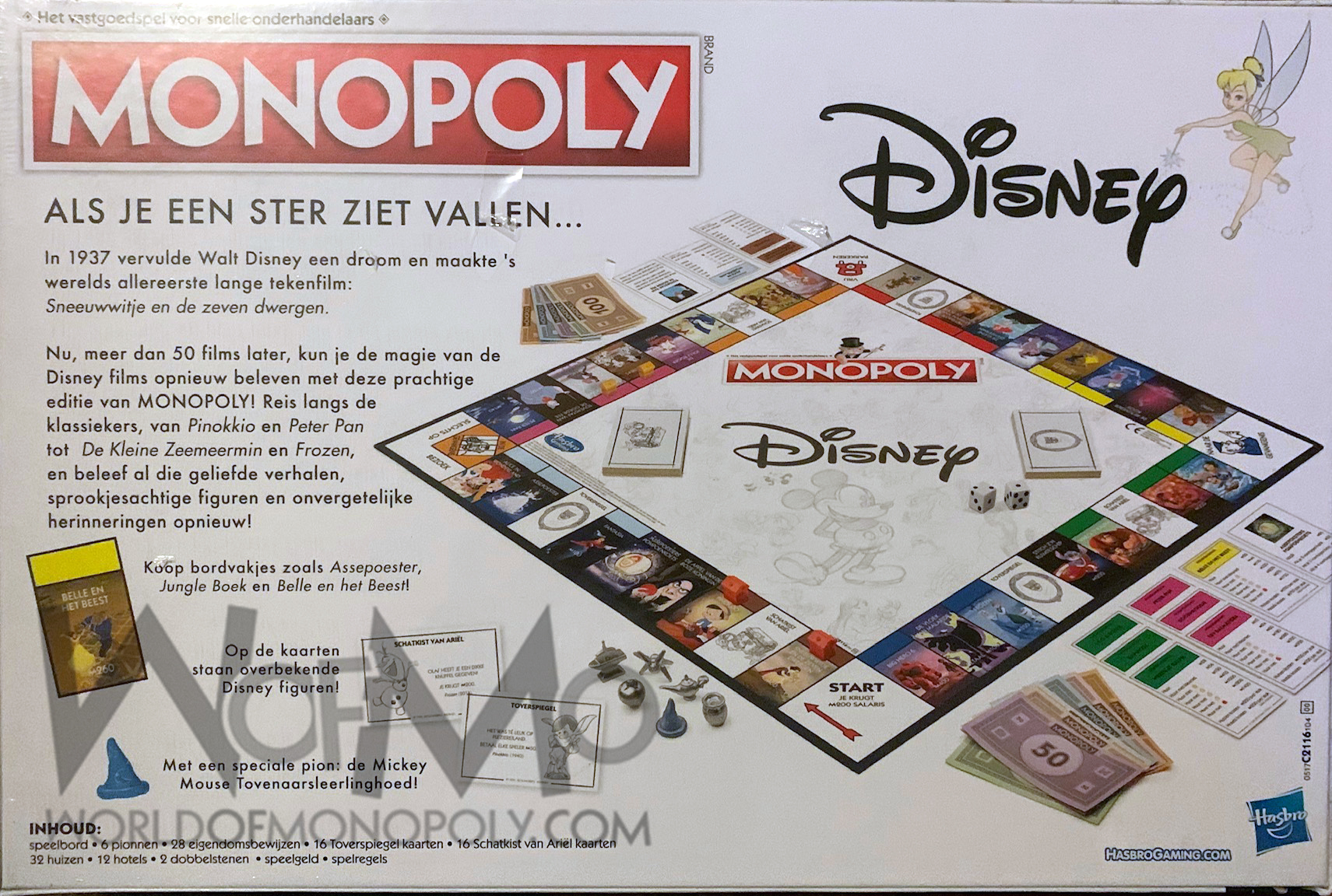 Players can relive the history of Disney animation as they travel around the board. In this edition, players move around the Disney-themed gameboard, accumulating hotels and houses, buying Disney Movies, Vehicles, Magical Objects, and creating new Disney family memories.