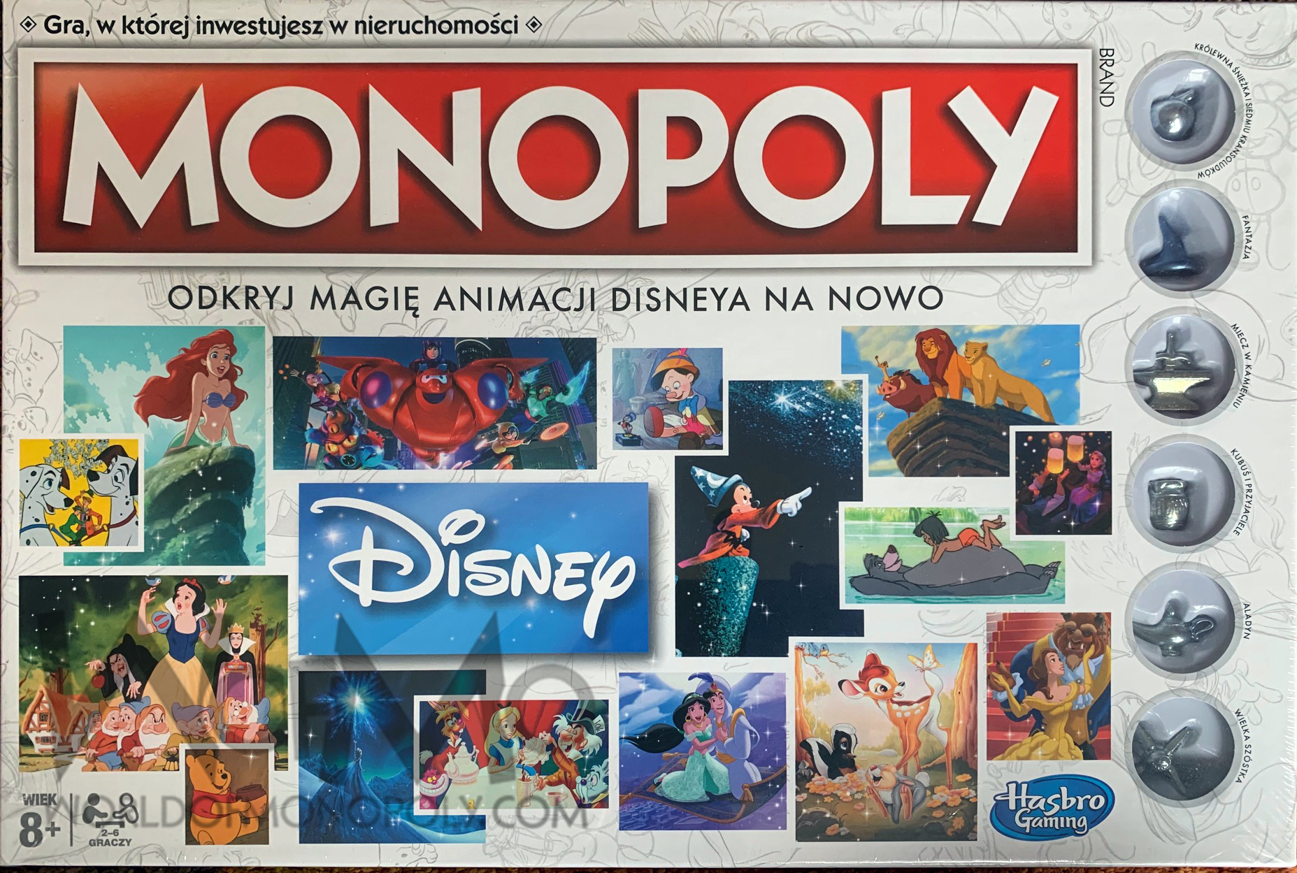 Players can relive the history of Disney animation as they travel around the board. In this edition, players move around the Disney-themed gameboard, accumulating hotels and houses, buying Disney Movies, Vehicles, Magical Objects, and creating new Disney family memories.