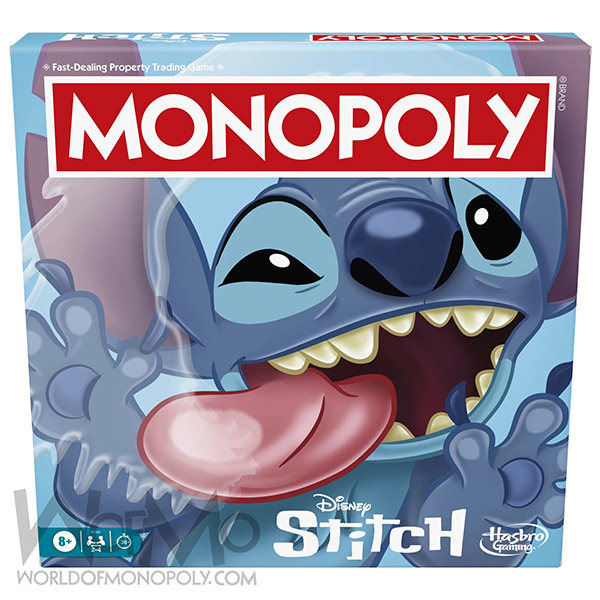 Create a perfect day with Stitch in the Monopoly Disney Stitch Edition game! In this edition, properties are replaced by Stitch’s favorite activities, such as Hula Show and Chillax, and beach rentals. First each player chooses a unique Stitch token. Then they move around the board, trying to claim as many activities and beach rentals as possible.