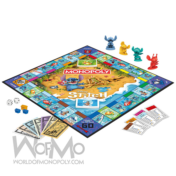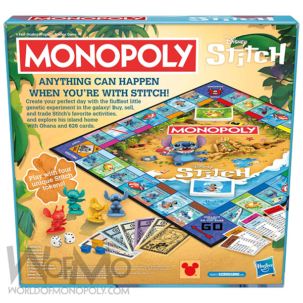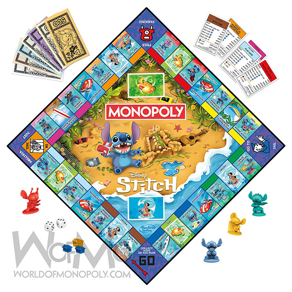 DISNEY STITCH-THEMED GAMEBOARD: In this edition, fun activities and beach rentals replace properties. The more a player claims, the more exciting their day will be and the more rent they might collect from others.
