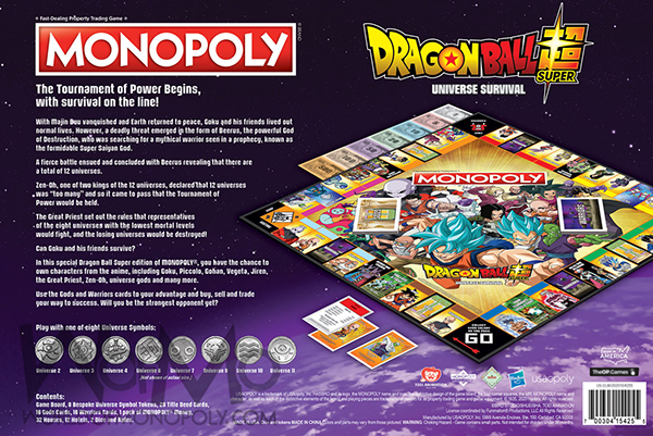 The long-running anime makes yet another comeback in the form of a classic board game that captures the continuing Dragon Ball power struggle! Join your favorite Z fighters as you buy, sell, and trade Goku, Piccolo, Gohan, and many others as properties in MONOPOLY: Dragon Ball Super.