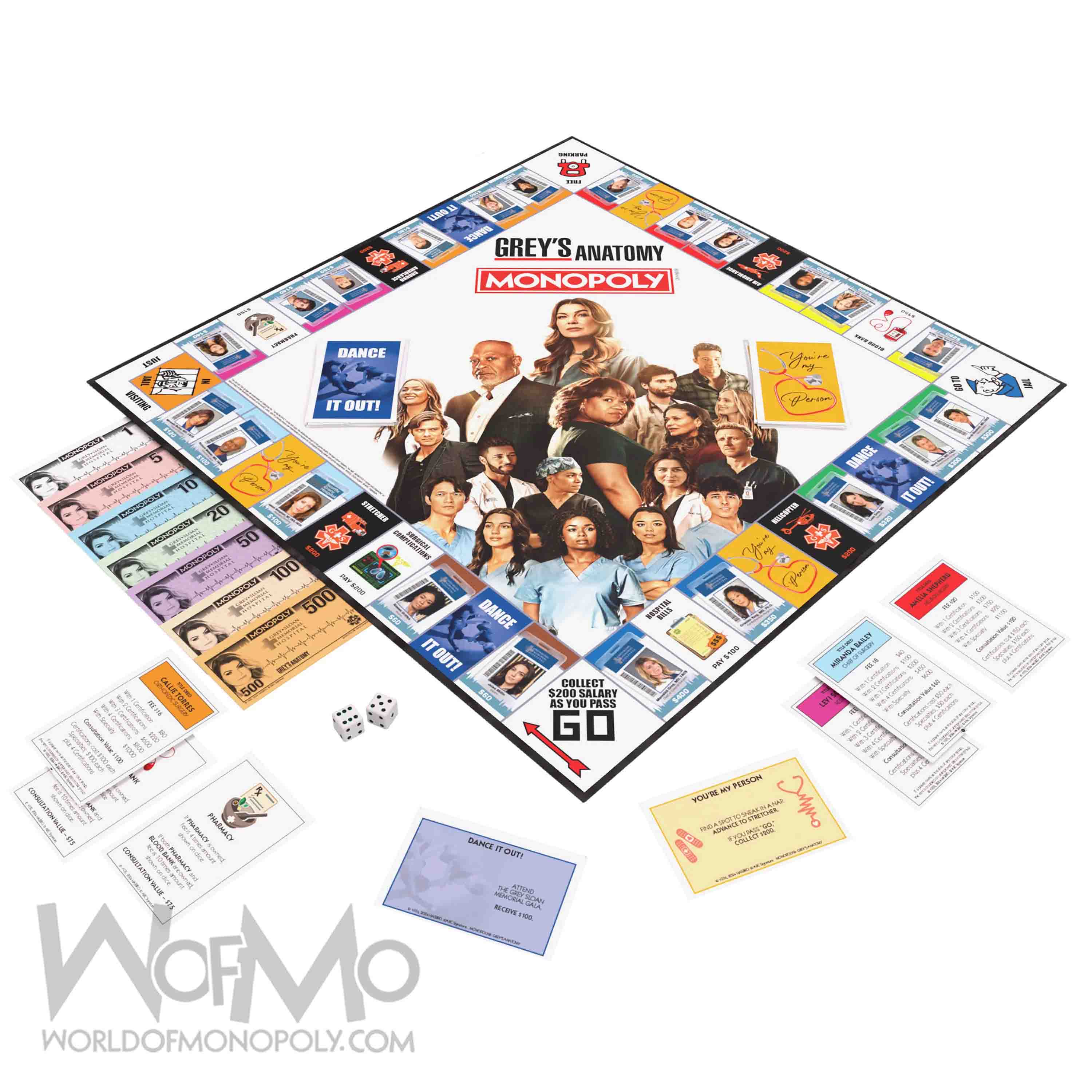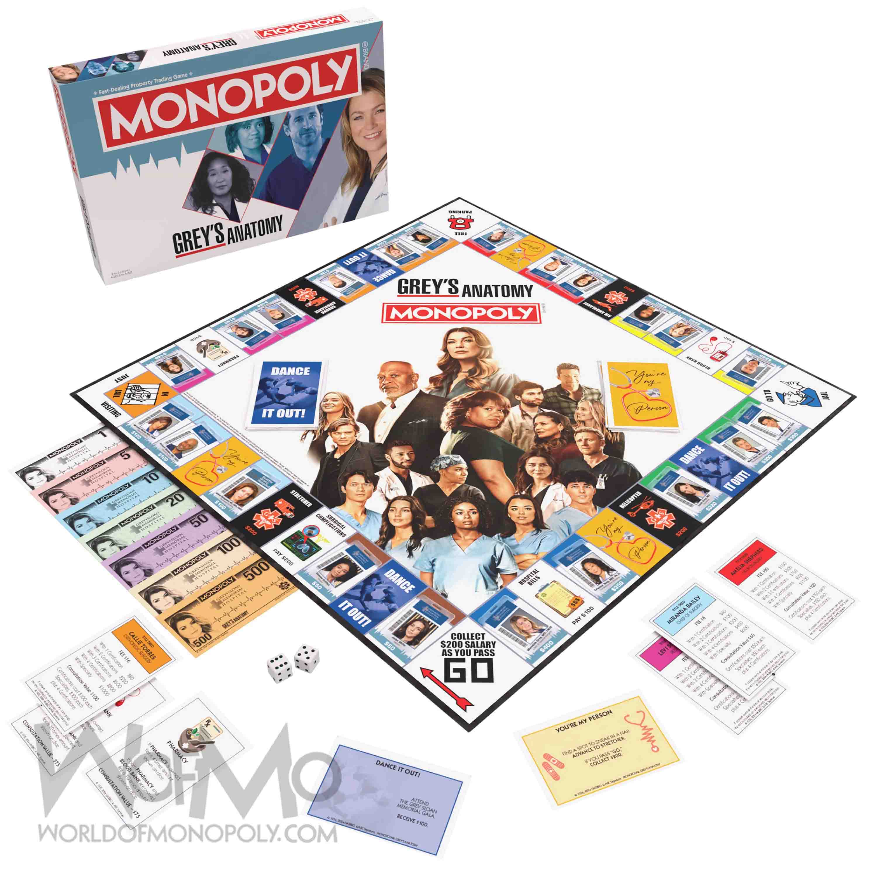 Operations. Relations. Complications. - Welcome to Grey Sloan Memoria! Experience the heart-pounding drama of Grey’s Anatomy in this special edition of Monopoly: Grey’s Anatomy. Experience the highs and lows of the medical world as you assemble your dream team of doctors, from Miranda Bailey to Meredith Grey, and navigate the challenges of Grey Sloan Memorial Hospital.