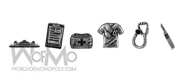 Featuring 6 custom sculpted Grey’s Anatomy tokens – Ferry Boat, Clipboard, First Aid Kit Bag, Scrub Top, Stethoscope, Scalpel.