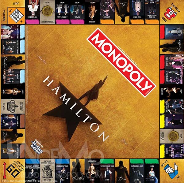 Celebrating 10 years on Broadway, the new game brings the magic of the stage to the tabletop. With harmonious twists on classic MONOPOLY components, fans will explore the exciting world of Hamilton as they buy, sell, and trade familiar songs from the show as they make their way to Broadway glory. Collect rent and negotiate trades, but beware—history has its eyes on you!