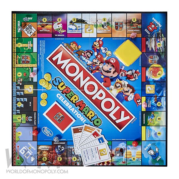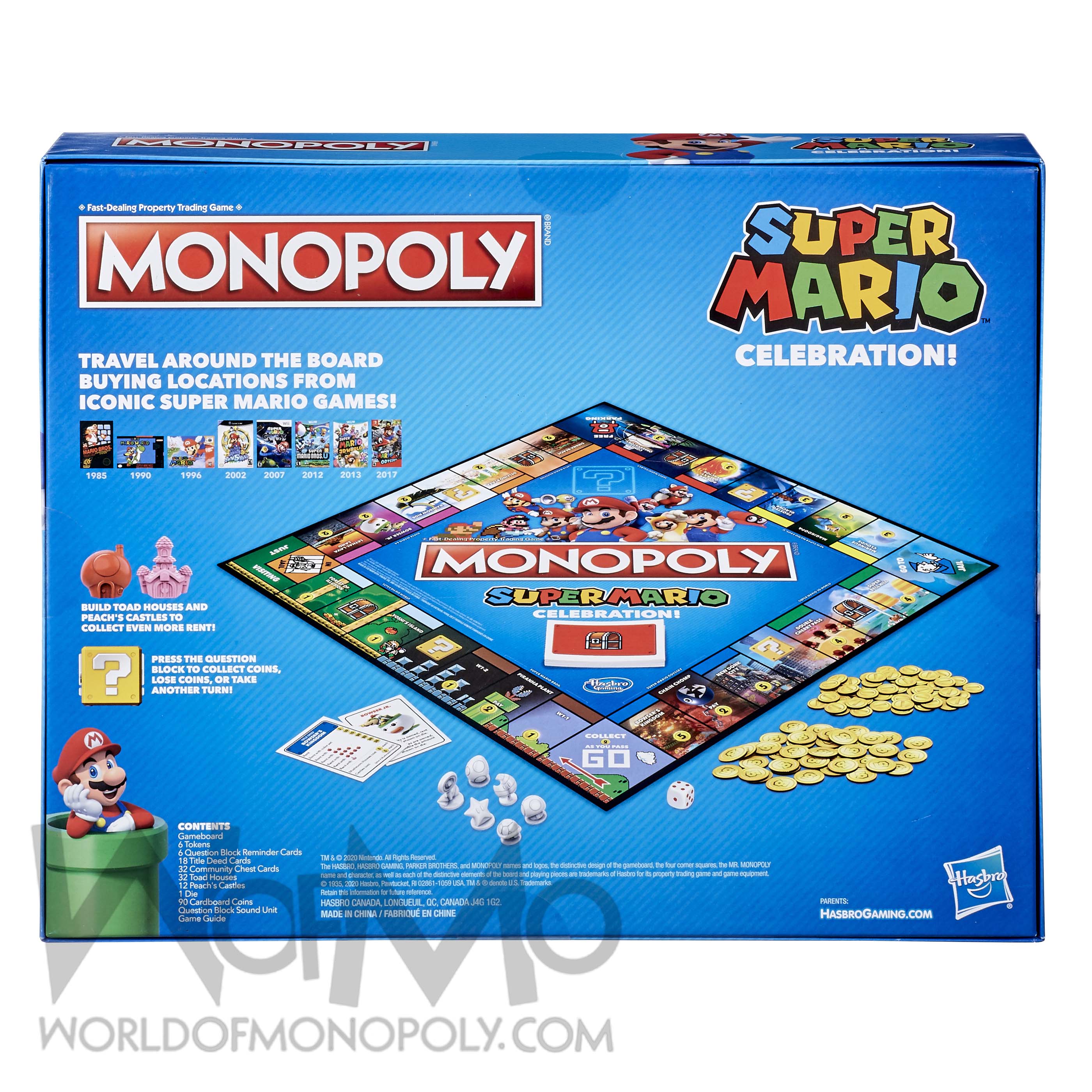 It features beloved characters and themes through the years, all the way back to 1985 and the first Super Mario Bros. video game. The Monopoly game features a Question Block with sound effects that can change a player's luck. Toad houses and Princess Peach's castles replace houses and hotels.