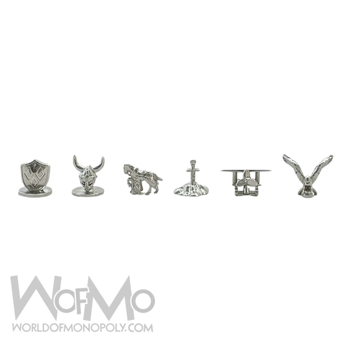 The 6 exclusive pawns are emblematic elements of Puy du Fou: the Biplane, the Coat of Arms with the 3 macles of Puy du Fou, the Eagle, the Viking Helmet, the Excalibur Sword, the Horse with its caparison.