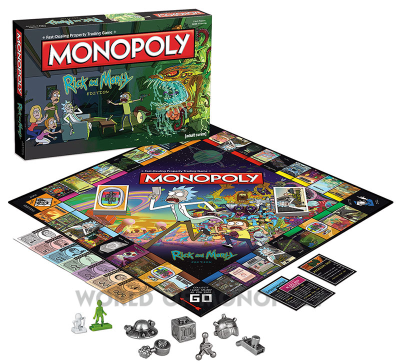 Join Rick and Morty and the Smiths as you gallivant your way to victory by buying, selling and trading locations from the Multiverse including the Cromulon Dimension, Gazorpazorp and Planet Squanch (not to mention a few places from your own Earth realm). Featuring collectible tokens, Flooble Cranks, Gooble Boxes, custom Flurbo currency, and more!