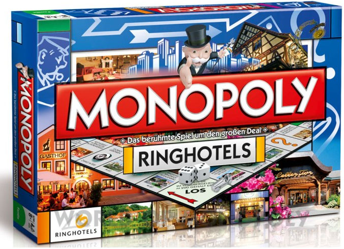 The idea for the Ringhotel Monopoly was born in the spring of 2010 as part of the Ringhotel Schmiede, a junior management circle of young Ringhoteliers. 19 ring hotels and restaurants can be purchased during the game. Those who, despite payment of cancellation fees, prison stay and travel cancellation insurance, have secured the largest fortune, are proud Ringhotels Monopoly winners.