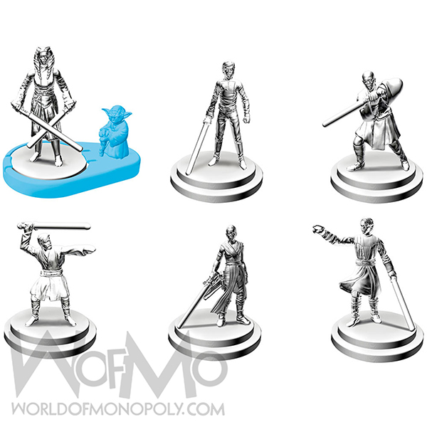 6 Zinc Character Tokens - Play as one of 6 Force-sensitive characters: Ahsoka Tano, Luke Skywalker, Mace Windu, Obi-Wan Kenobi, Rey Skywalker, or Anakin Skywalker.