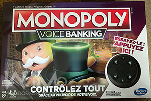 Monopoly meets voice recognition: in this electronic Monopoly voice banking game, Mr. Monopoly is the Banker and manages players' Money via his top hat.