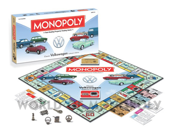 Take a tour of nostalgia, unique design and reliable engineering that has been Volkswagen's time-tested mark. Own all the makes and models that made history, including special California Look vehicles as you buy, sell, and trade your favorite vintage Volkswagens! This limited edition board game has been custom designed and tailored to Volkswagen enthusiasts — us! This version is slightly different to the USA version with different properties.