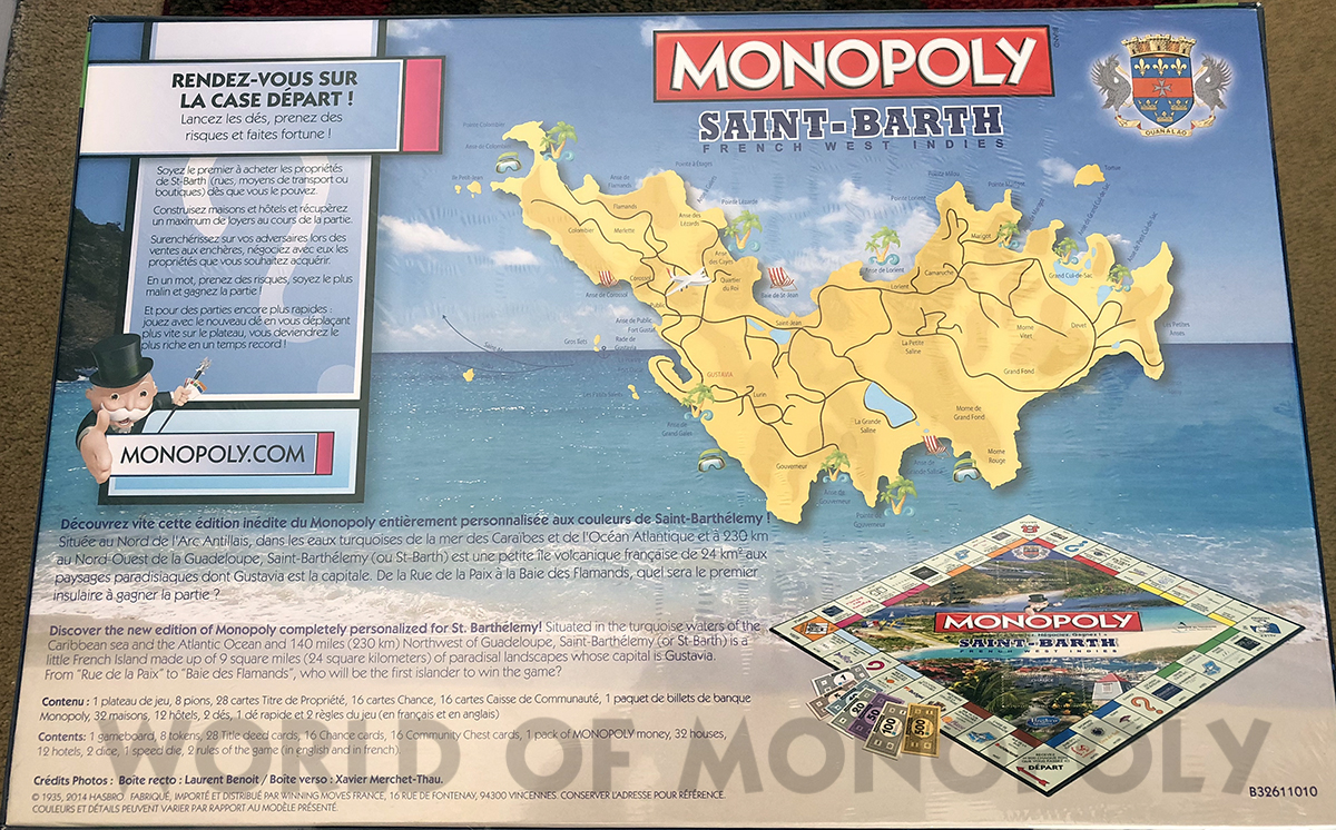 From "Rue de la Paix" to "Baie des Flamands", who will be the first islander to win the game? The bank notes are the sponsored by the Bank of the French West Indies and the houses are blue and the hotels are yellow.
