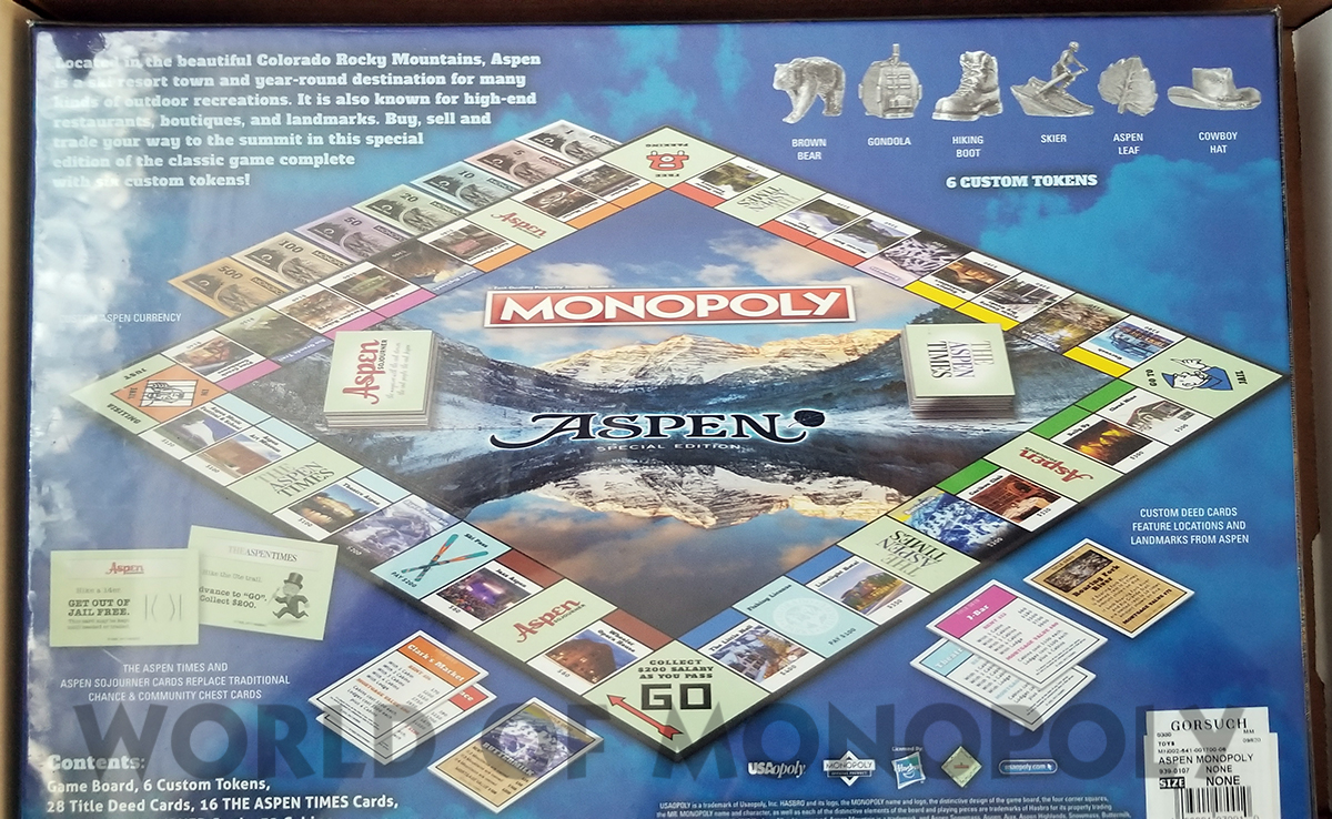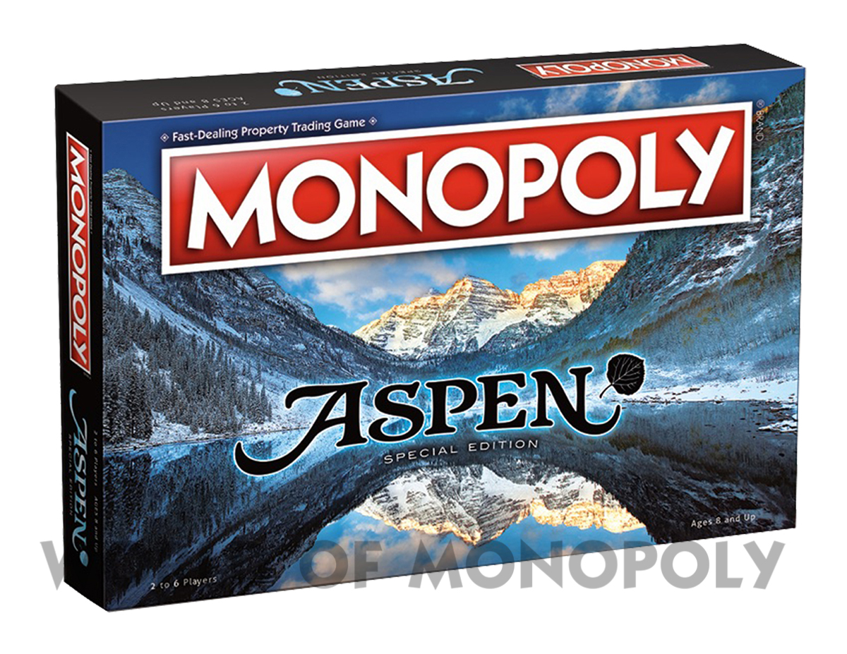 Buy, sell, and trade your way to the summit in this special, limited Aspen edition of the classic real estate game! America’s premier ski resort town and year round destination gives you an opportunity to own it all! Buy iconic Aspen locations while you move your special Aspen-themed tokens around the board. Buy cabins and lodges to build your real estate fortune and bankrupt the other players.