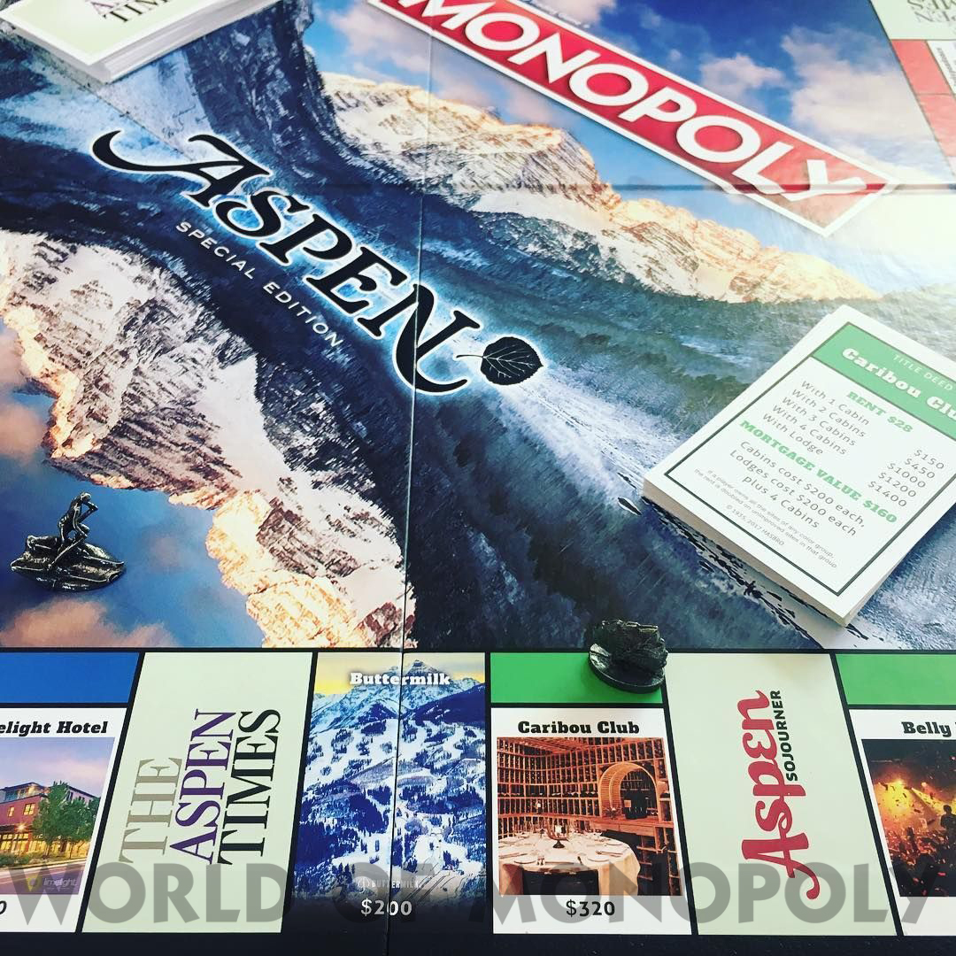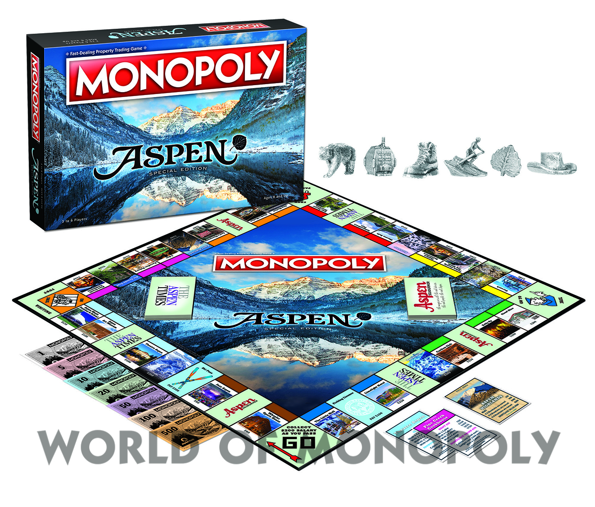 The Aspen Art Museum proudly joins other local Aspen landmarks like Wheeler Opera House and Maroon Bells on the game board while the Aspen Skiing Company’s four mountains take the place of the traditional railroads. Income and luxury taxes are replaced by ski passes and fishing licenses while the Community Chest and Chance cards feature locally themed prospects like "make your friends wait on a powder day."