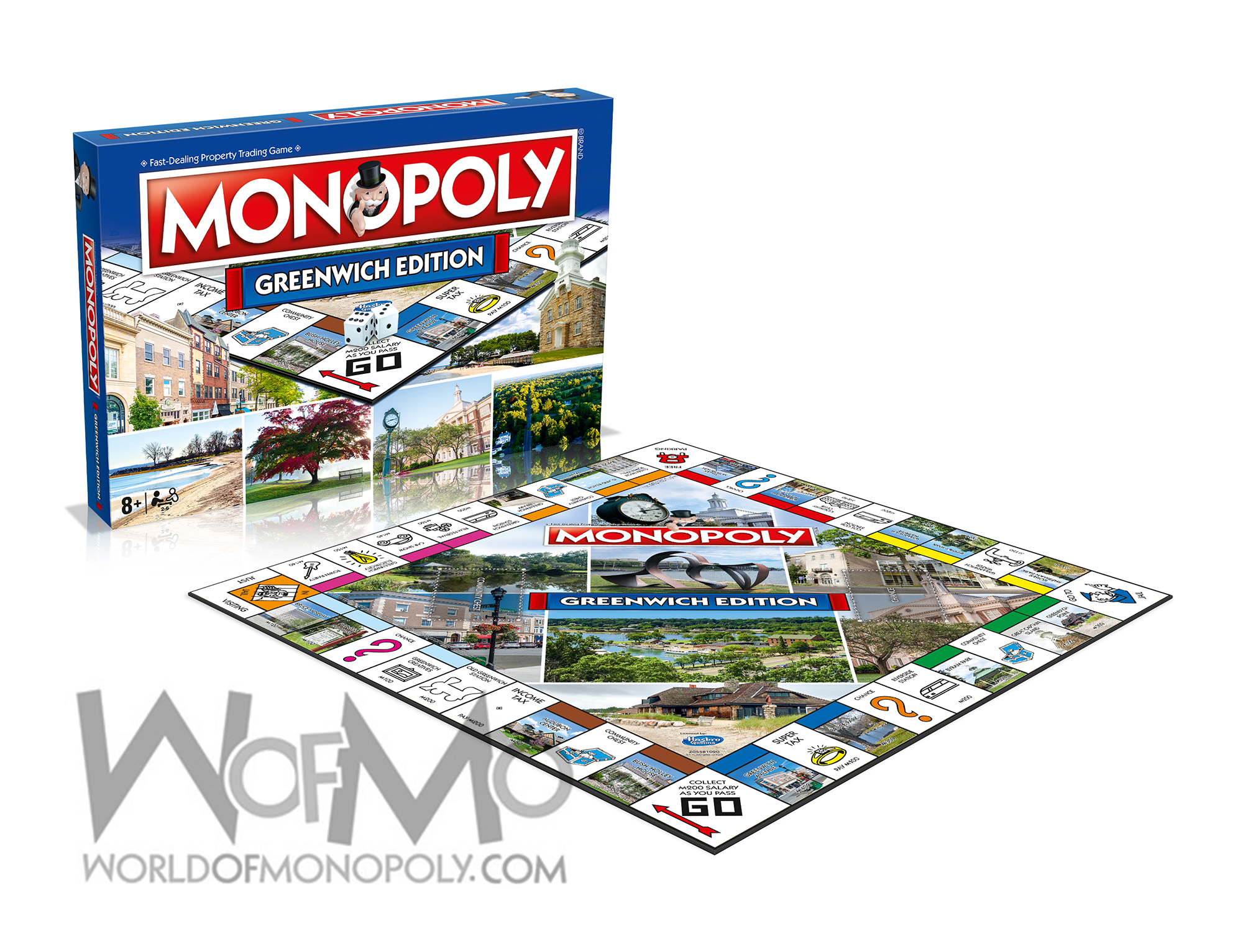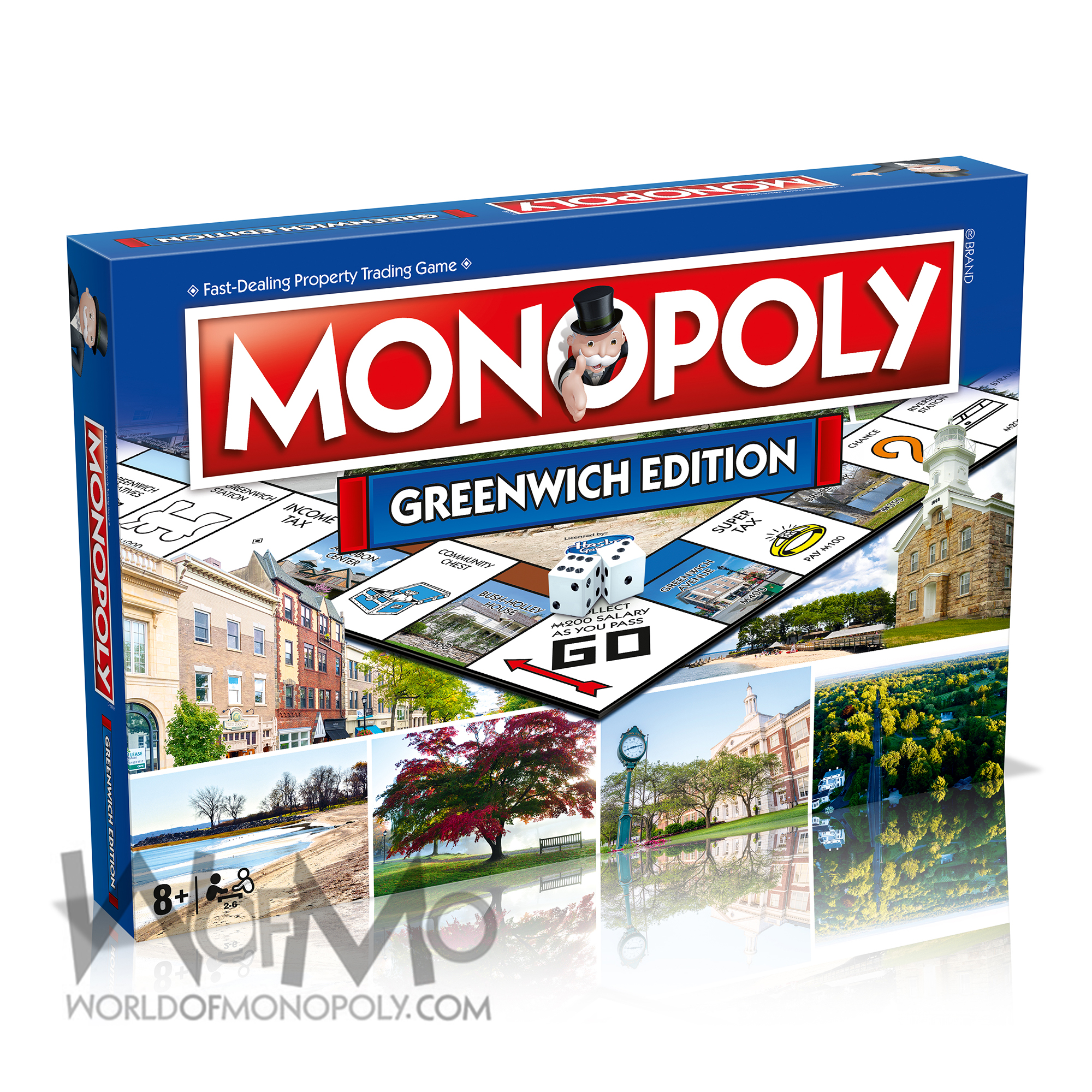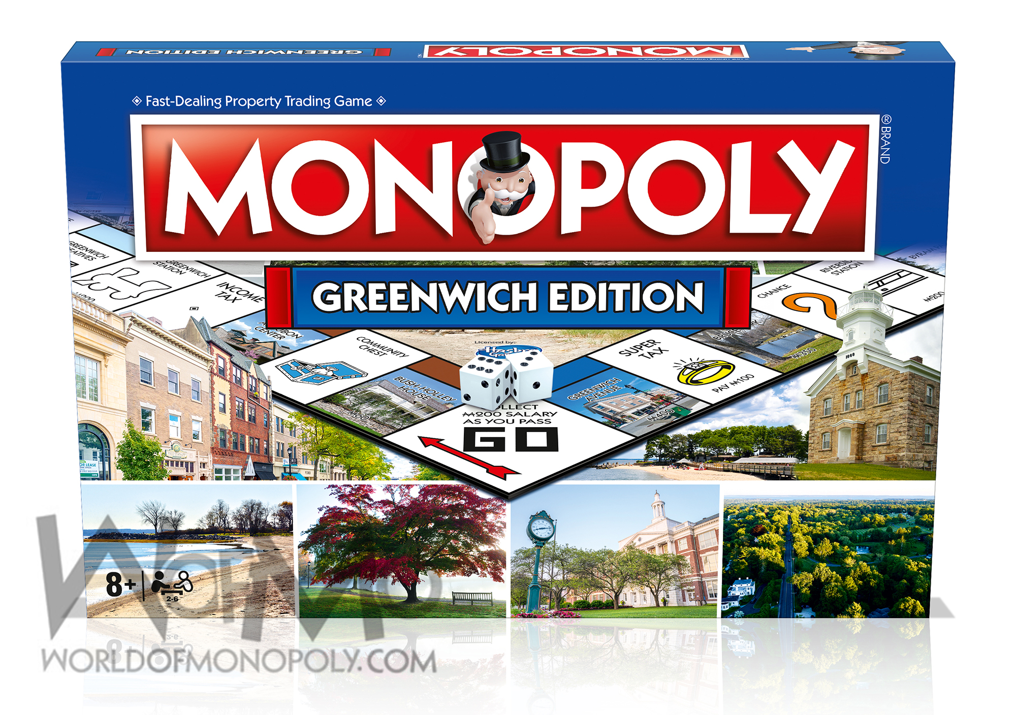 The game board is adorned with a montage of beautiful scenery from the local area, so locals and visitors alike will find plenty to appreciate. Buy up houses and hotels to improve your properties, and grab a Chance or Community Chest card for an unexpected surprise or penalty. Become the richest player in Greenwich and defeat your opponents in this new edition of the world’s most popular board game: MONOPOLY!