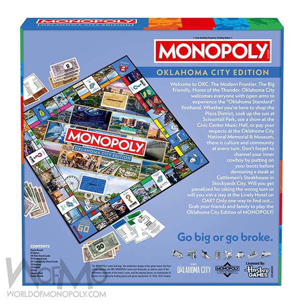 Welcome to OKC – The Modern Frontier! Celebrate the heart and soul of Oklahoma City in this exciting, local edition of the world’s most famous board game — MONOPOLY: Oklahoma City Edition! From the buzz of Bricktown to the peaceful views of Scissortail Park, players can buy, sell, and trade their favourite OKC landmarks as they build their city empire. Explore everything that makes "The Big Friendly" shine — from cowboy culture to cutting-edge art, delicious dining to iconic districts. Will you make your fortune on Oak Avenue or lose it all taking a wrong turn downtown? Roll the dice, embrace the Oklahoma Standard, and see if you have what it takes to own it all in Oklahoma City!