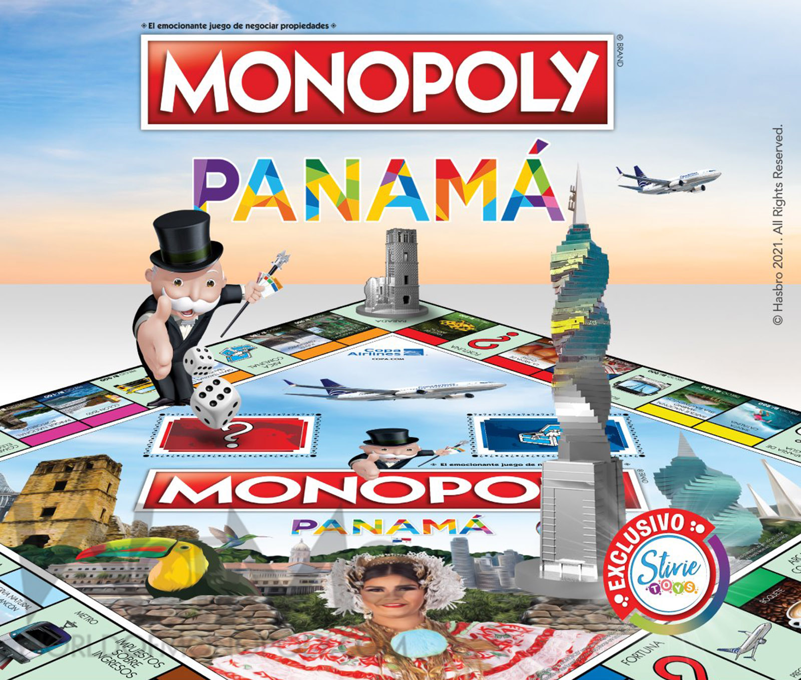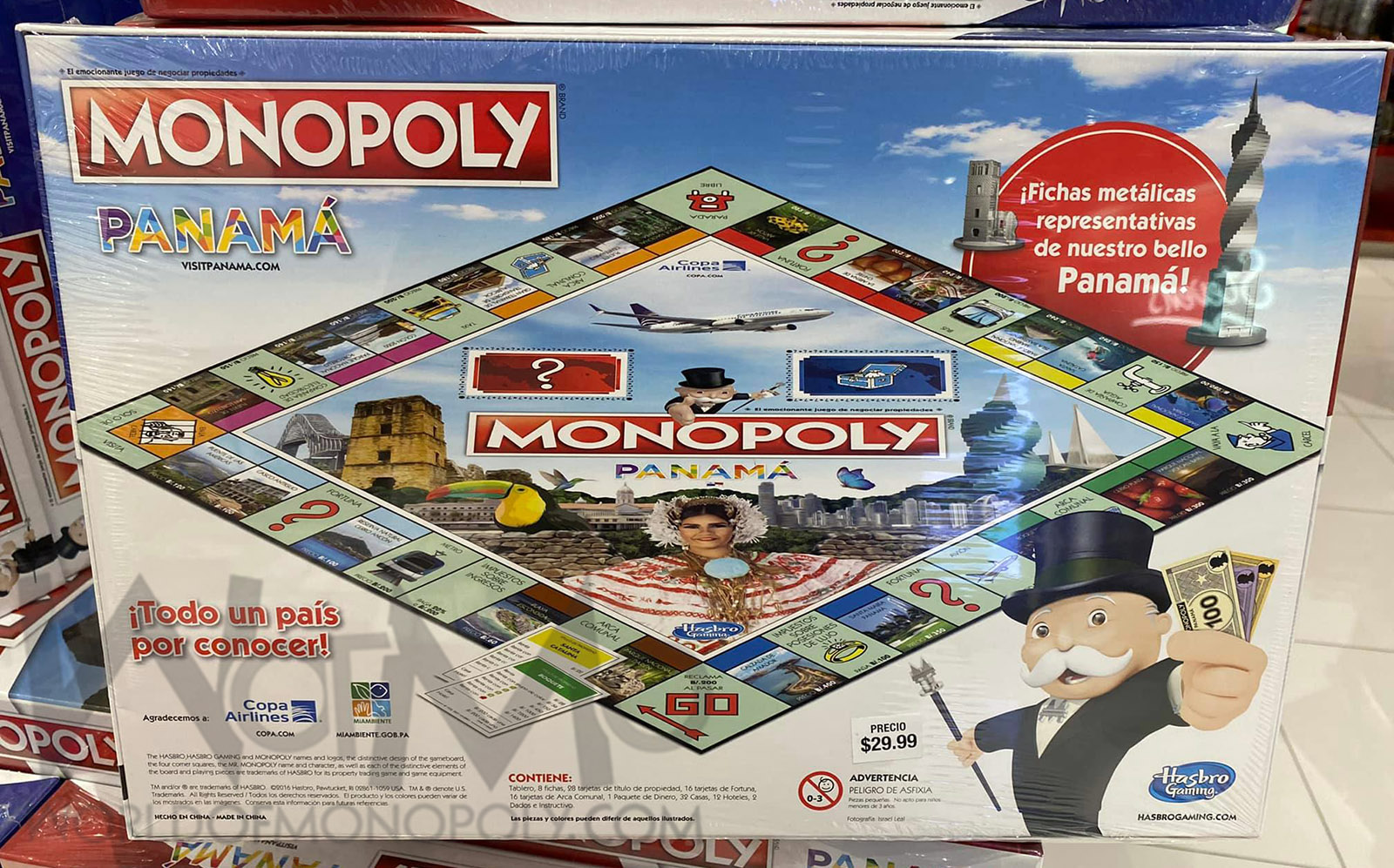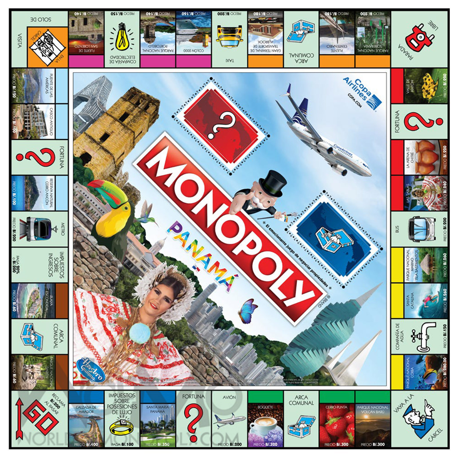 Includes tokens alluding to Panama such as: Harpy Eagle, Typical hat, Skirt, Drum, Red Devil Bus, Panama La Vieja Tower among others.