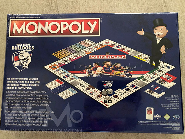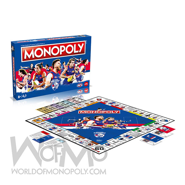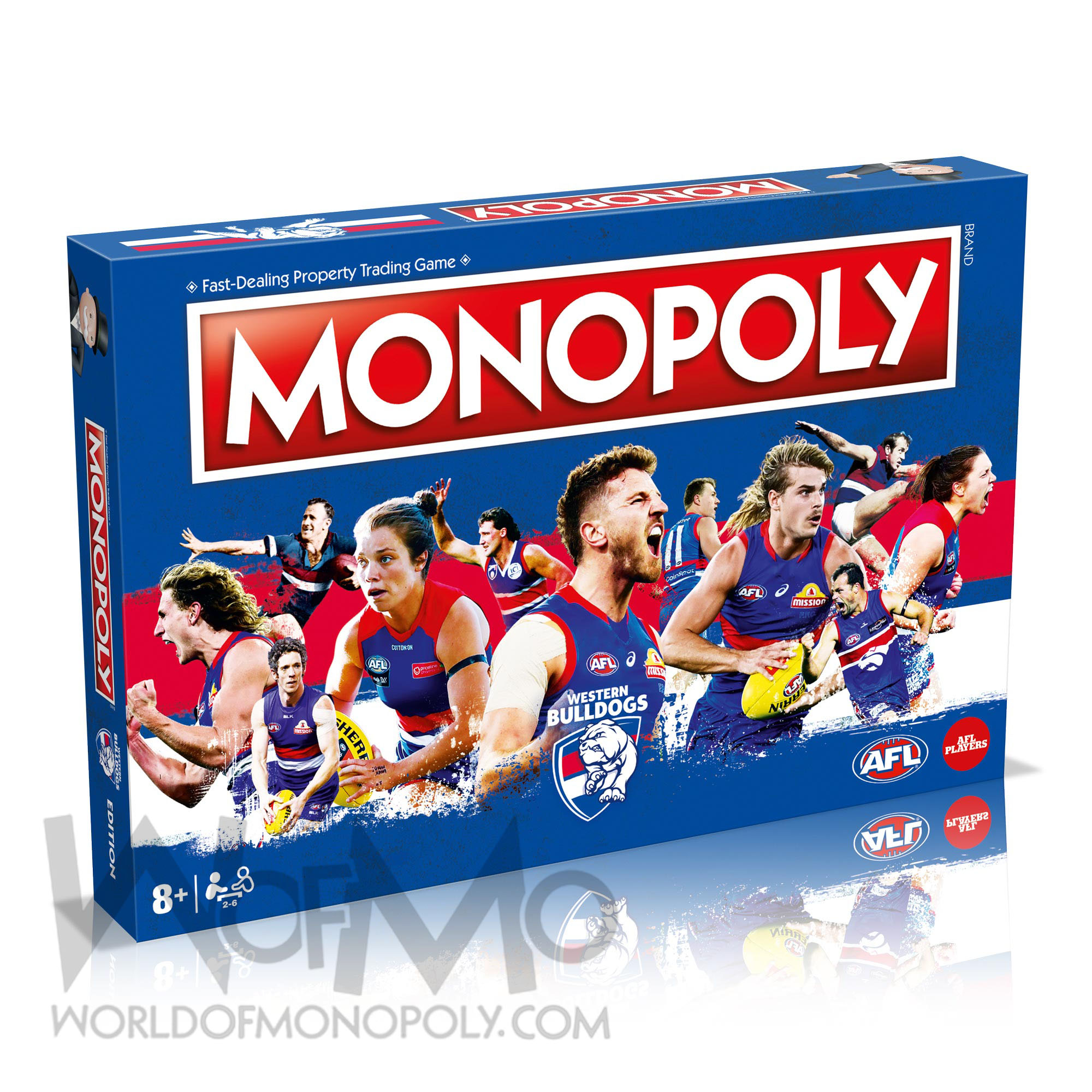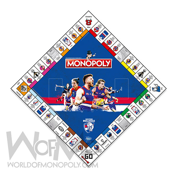 It's time to immerse yourself in the red, white and blue with this special Western Bulldogs edition of MONOPOLY. Celebrate the sons and daughters of the west that have worn our famous guernsey, and reminisce on the magic moments in the Club's history. Move around the board to find courageous captains, record breakers and excitement machines! From the current day superstars to the all-time legends, it's non-stop fun with the Western Bulldogs. There are contracts to sign and trades to make, so don't wait - roll the dice and enjoy the MONOPOLY Western Bulldogs edition.