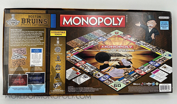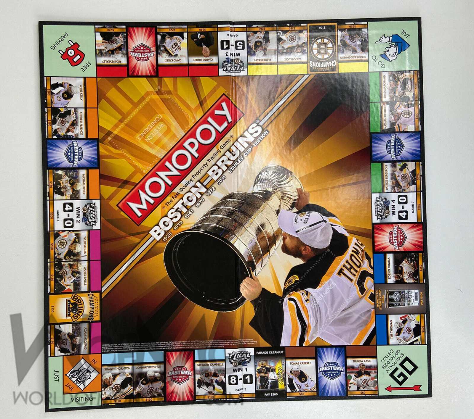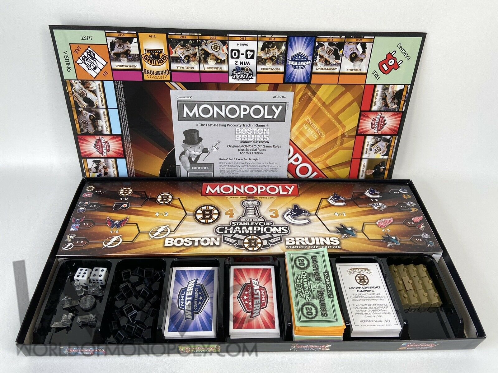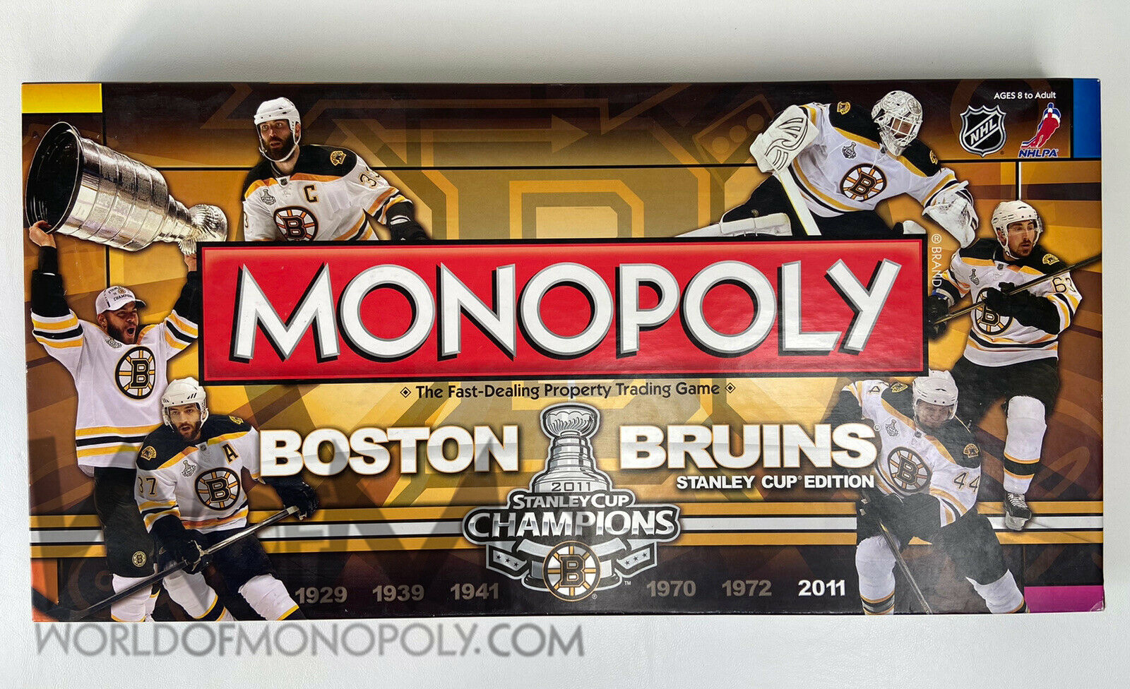 In this special Boston Bruins Stanley Cup Edition of the Monopoly game you will buy, sell, and trade gritty, hard-nosed players like Zdeno Chara and Tim Thomas. Wheel and deal electrifying scorers Brad Marchand and Patrice Bergeron and the rest of the team that came together to exceed expectations and make history.