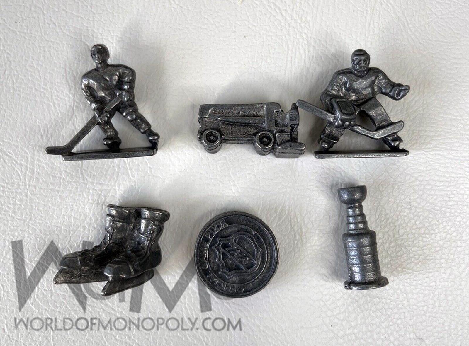 It's time to drop the puck! Features 6 collectible tokens: Stanley Cup, hockey puck, forward, goalie, skates, and Zamboni ice-resurfacing machine.