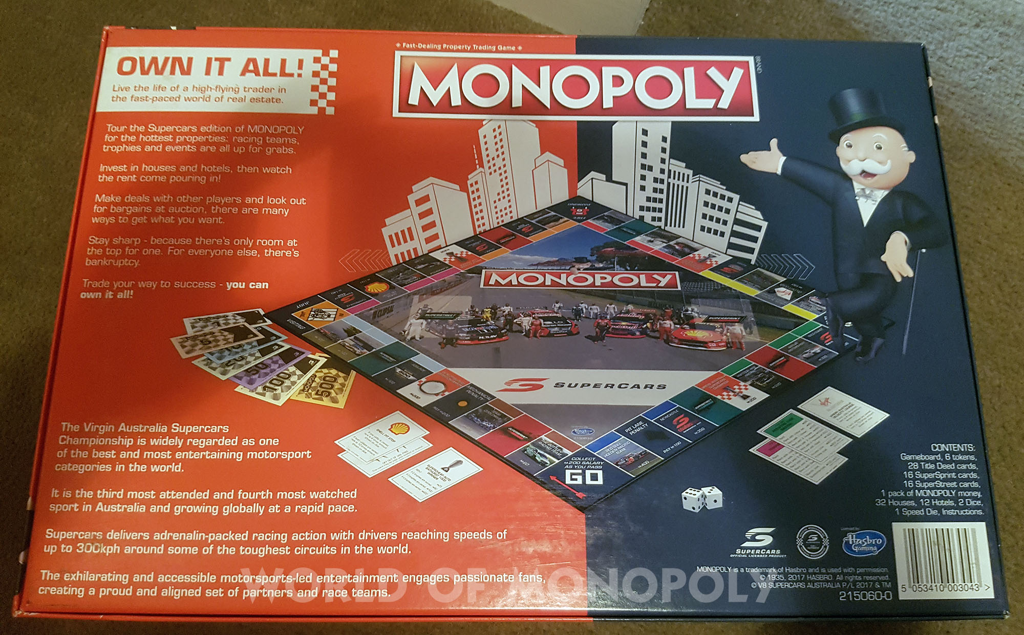 It features 6 customised metal token; feul pump, steering wheel, key, gear stick, wheel and of course, the Supercars Championship Trophy!